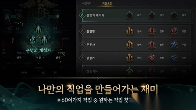 游戏里职业的构成颇为独特,每个职业都能配备所有武器。然而,职业的构成是由3种标签触发从而对应相应职业,并且只有相同标签的能力装备,才称得上是一个完整的标签,构成的职业还会有对应的职业加成。能力既可以选择装备在主动技能位置,也能装备在被动技能位置,不同位置会产生不一样的效果,进而可以形成多种多样组合的主动技。职业设置的格子最多能解锁三个,在战斗过程中也能够进行切换,切换后主动技也会随之变化。再结合武器、能力、职业技能以及道具/时装技能的搭配,能让角色具备相当多元化的战斗能力,玩家也可以打造出自己心仪的作战模式。