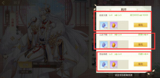 给羽卫激活并提升羁绊可以提升羽卫的战力和四维(防御和闪避)