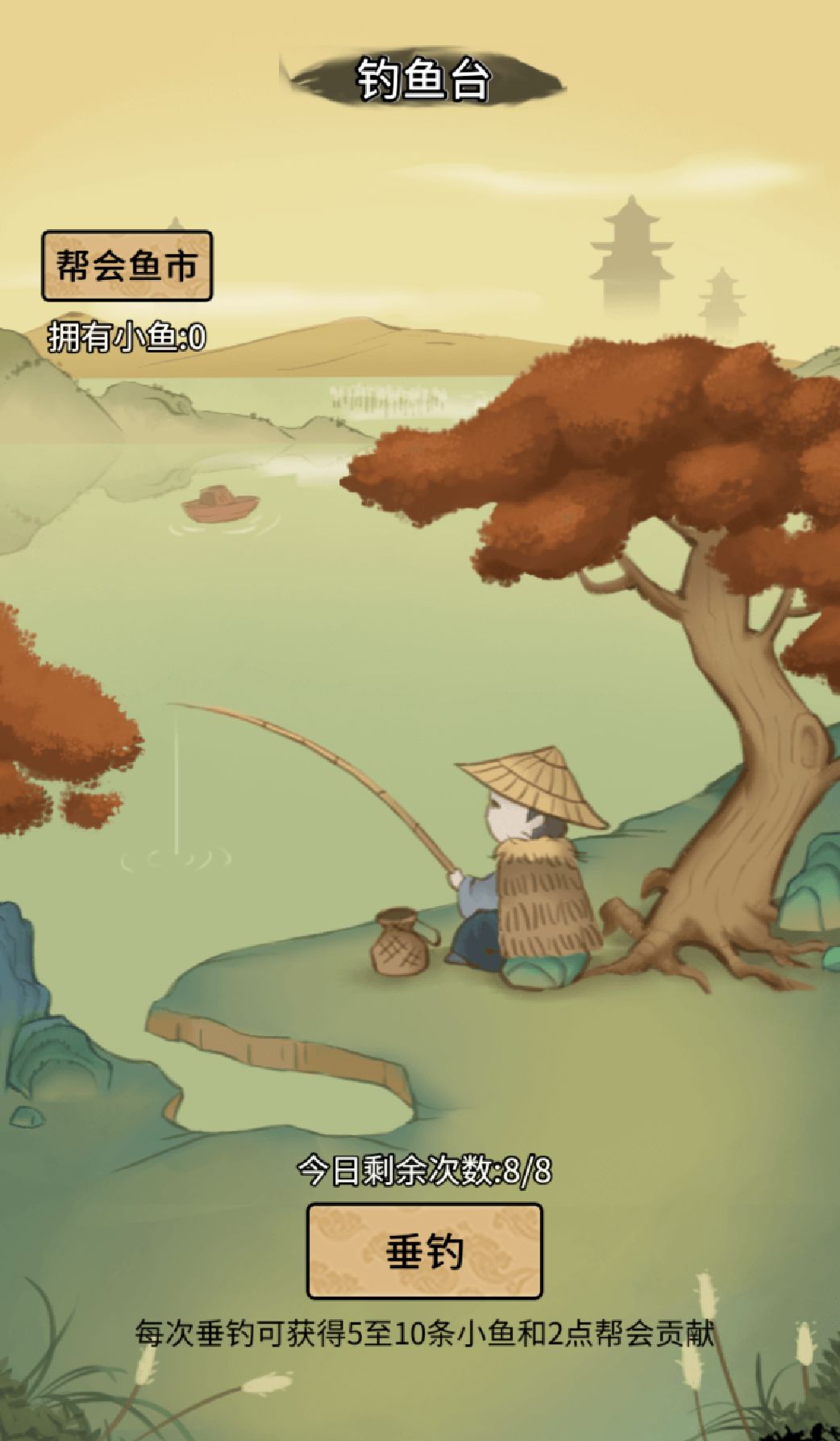 每日都可以钓鱼,小鱼可以在鱼市兑换稀有资源!
