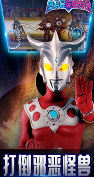 1、在奥特曼英雄传说中,前方有怪兽出没,请按住并拖动左侧虚拟方向盘进行移动。