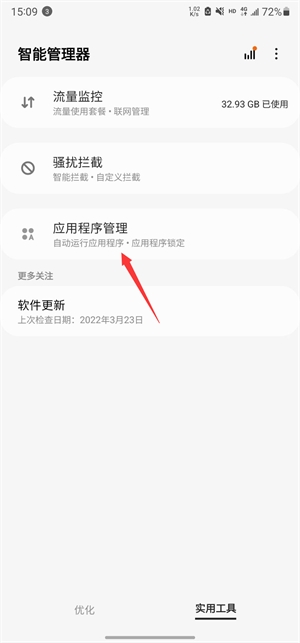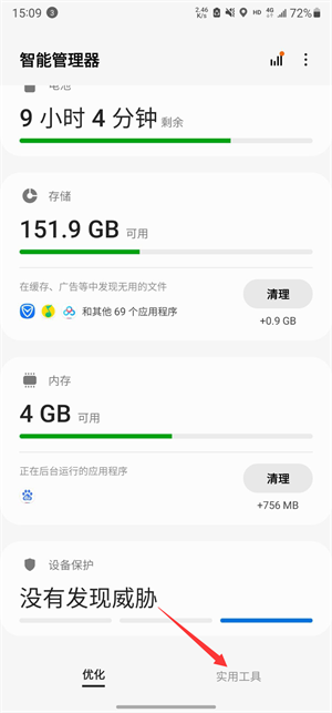 进入三星手机的智能管理器点击实用工具