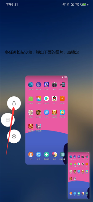 2、后台任务,锁定X8沙箱,即后台多任务界面,下拉一下X8沙箱,出现锁的标志即可。