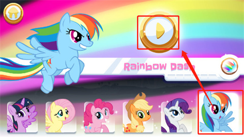 2、进入小马宝莉彩虹跑将游戏后需要先选择需要操作的小马驹。