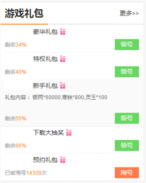 大家可以把66手游的手机专区添加到浏览器书签,登录专区首页,查看“礼包发放”的列表。点击领号、淘号、预定即可!