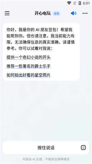 7、支持语音输入和语音回答,提供了更加便捷、自然的交流方式,用户只需通过语音提问,豆包就能立即给出答案或者回复。
