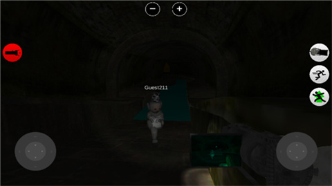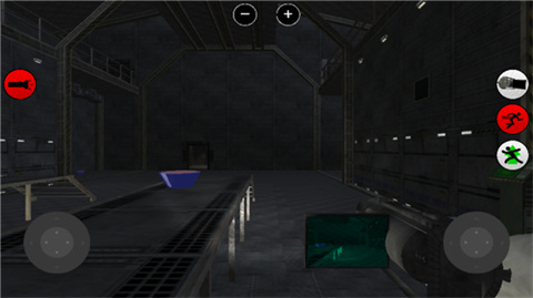 4.正式进入游戏后,左边为控制方向健,右边则控制视角,其中的按钮依次为灯开关,摄像机放大,人物的跳和奔跑。