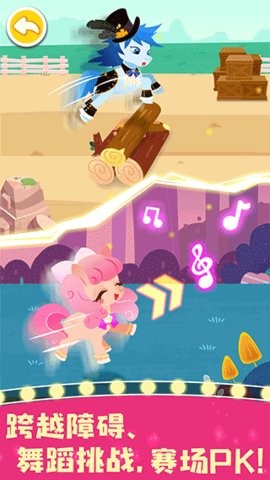 3.小马上场了!四大主题锦标赛:障碍赛跑、高空射击、彩蛋迷宫、舞蹈比赛,让小马展示自己的技能。