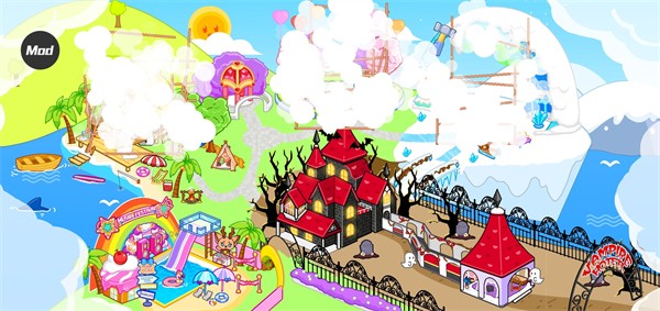 3.包含了众多卡通场景,能够自由探索还可以布置家具