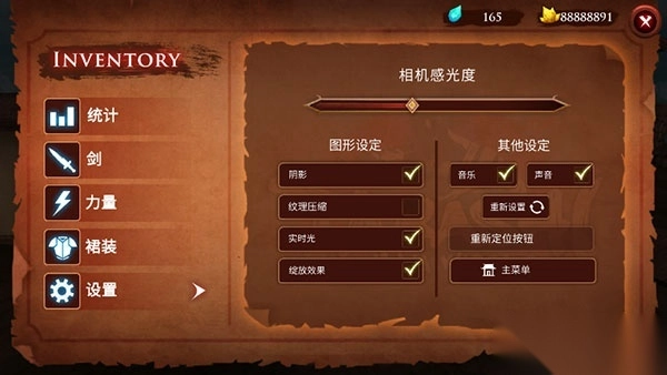 5、在设置界面,还能够对图形设定、纹理压缩以及音乐与声音选项进行调节。