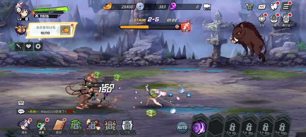 4、游戏采用RPG自动攻击玩法,点击右下方AUTO可关闭自动攻击;