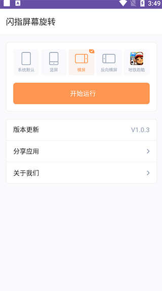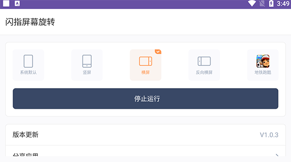 闪指屏幕旋转更新至第一版,支持手机固定横竖屏方向。