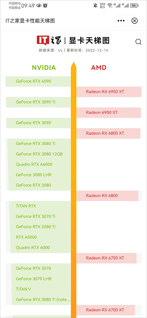 2、进入后就可以看到显卡的NVIDIA和AMD的排行榜了