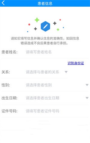 2、填写患者的身份信息,即可绑定就诊卡。