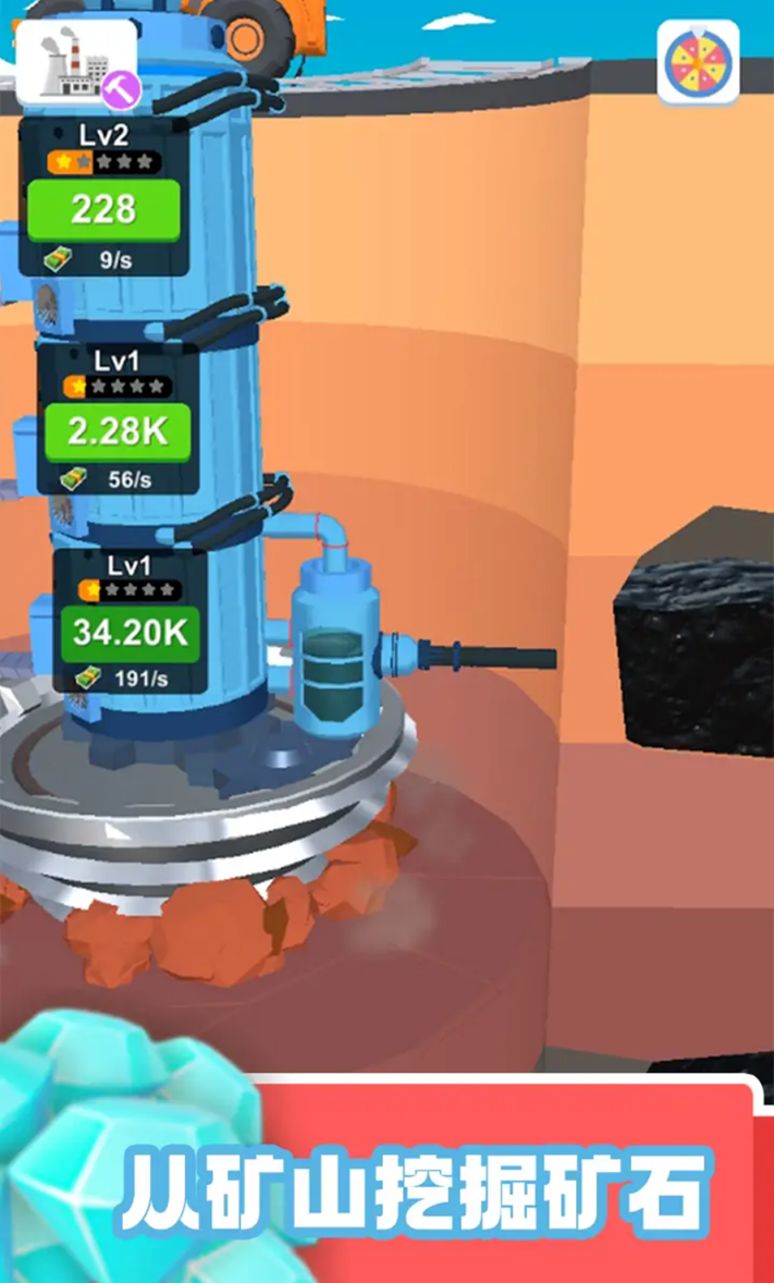 需要玩家在矿山上进行挖掘和运输,获得有用的资源,完成更多的任务。