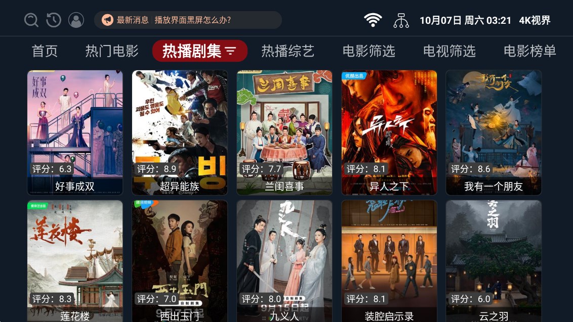 4k视界最新版app是一款非常实用的影视软件,用户可以根据不同的节目分类在线自定义查找,视频缓存速度很快,支持一键下载以满足大众需求,在没有网络的情况下也能观看,可以随意选择想看的内容。