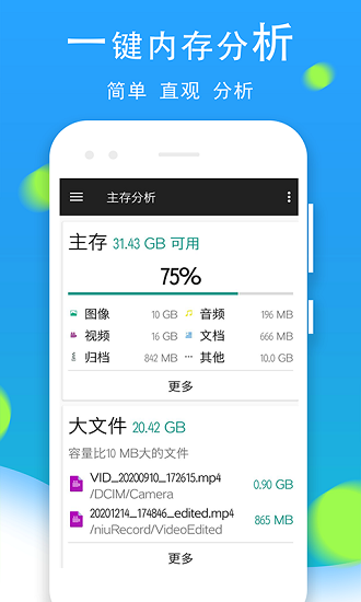 支持分析主存,可清除垃圾文件,帮您查看容量较大的文件等。