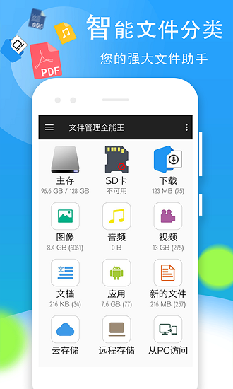 文件管理全能王app允许用户自由管理手机上的所有文件,包括内部存储和SD卡中的文件。它会实时更新剩余存储空间,并提供各种工具,使日常管理变得轻松愉快。