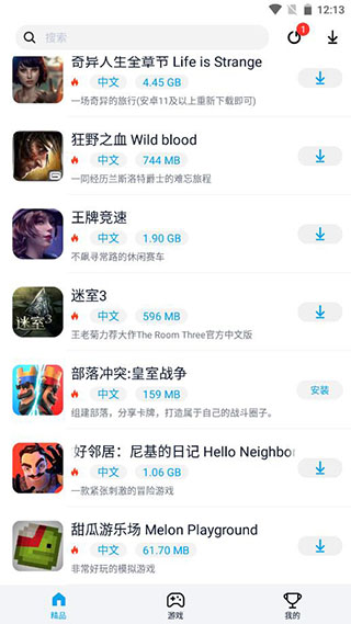 3、发现自己喜欢的游戏点击右边的下载按钮;
