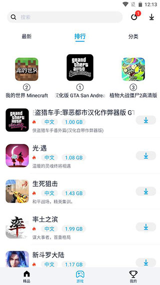 6、另外在游戏中还可以查看最新、排行、分类;