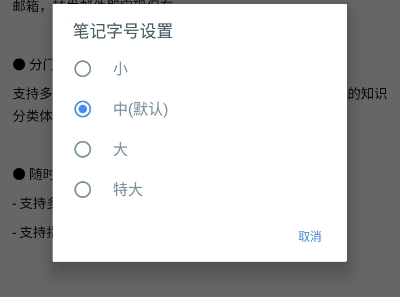 2、在这里就可以直接对这片笔记的字号进行设置。