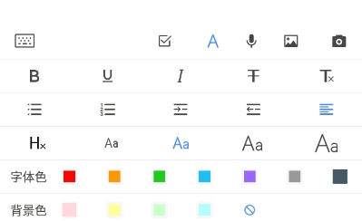 2、在编辑笔记内容的时候,大家可以通过底端的功能列表添加录音、图片,对其中的字体进行修改设置,非常方便快捷!