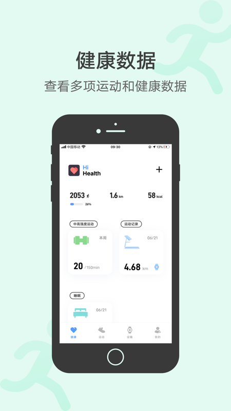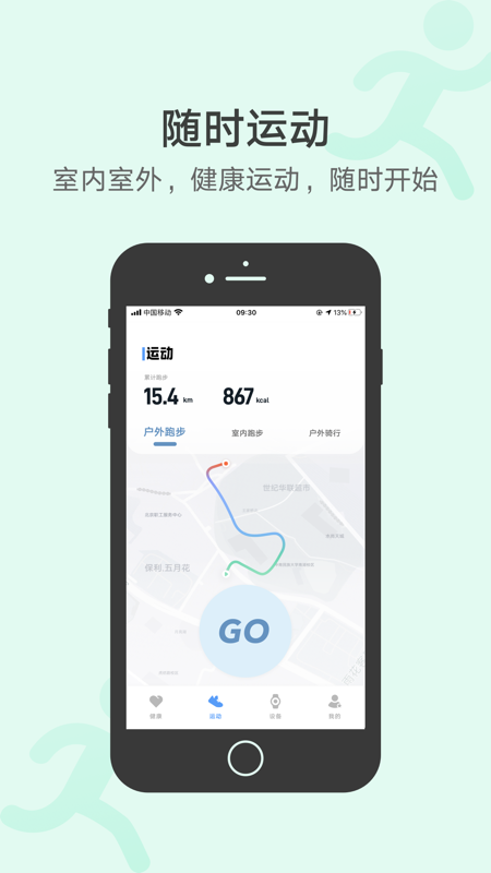 2.通过手机记录户外跑步、室内跑步、骑行等数据。