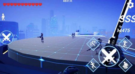 3、面对敌人的时候,我们也可以点击虚拟按键使角色举起武器,向敌人发起攻击。