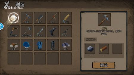 1. 制作各种生存和勘探工具,如砍伐树木,开采矿物等,需要一定的技能。