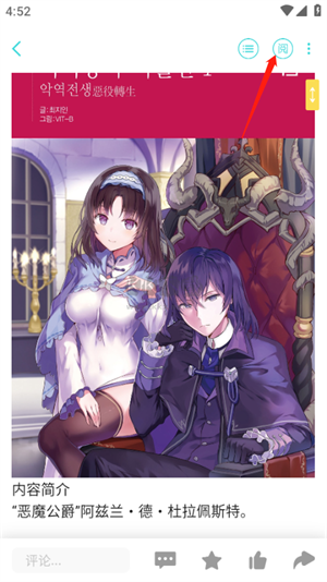 2、搜索你喜欢阅读的小说进入,点击右上角阅。
