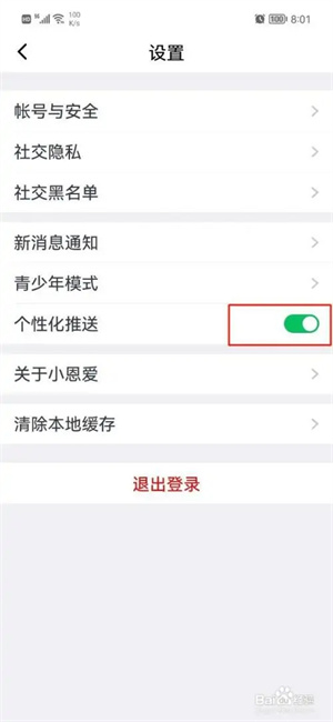 第三步:在设置页面,把【个性化推送】选项开启即可,如图所示。