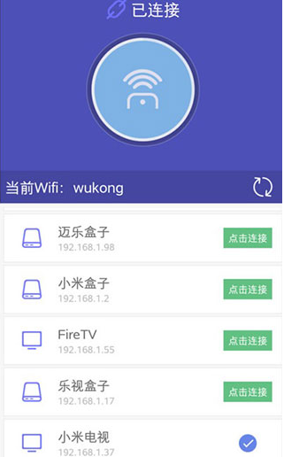 2、如果搜索到相关设备,就会看到下面的界面(支持连接多个设备),点击对应的设备名称即可使用悟空遥控: