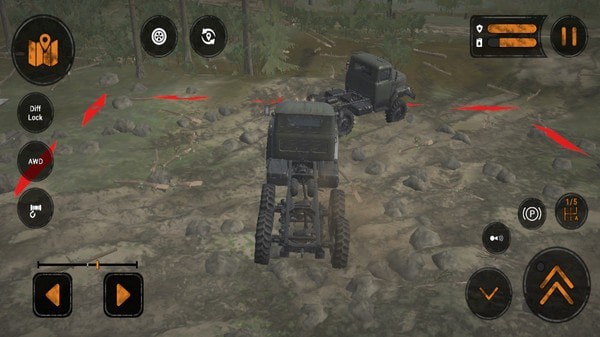 游戏中有些泥泞的道路,需要及时提升车辆性能,才能顺利翻山越岭。
