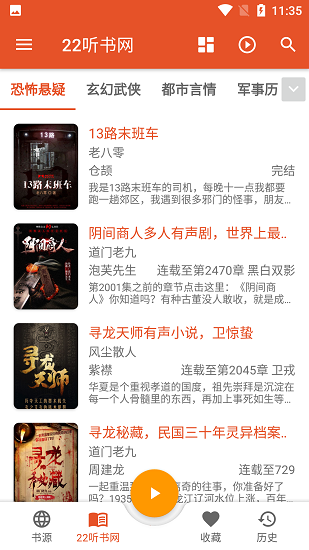 喜欢听的有声小说都可以收藏起来,在收藏栏里面找听过的书更方便。