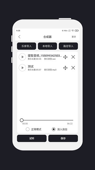 MP3剪辑器免费版应用程序允许用户在此平台上自由编辑任何音乐,可以裁剪和拼接自己喜欢的音乐来播放,轻松制作各种音乐串烧。平台提供了多种剪辑工具供直接使用,音乐文件可保存为任意格式,并且可以在本地自由聆听,十分便捷。