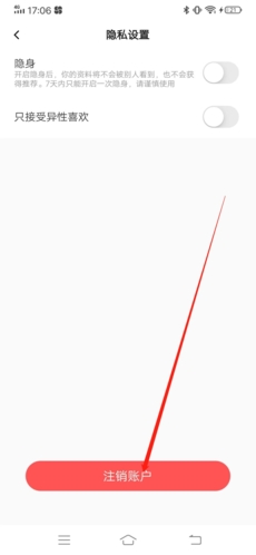 3、在这里我们就能看到下方红底的“注销账户”了,点击它;