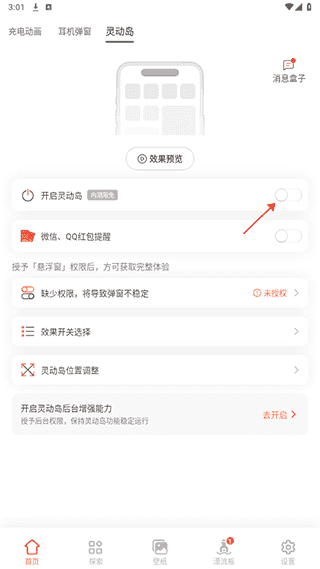 选择开启小组件盒子灵动岛的开关按钮。
