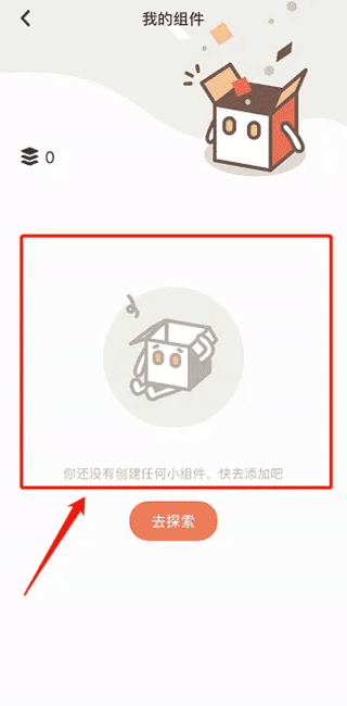 1、首先打开小组件盒子的探索界面,点击右上角的【我的组件】