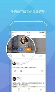 2,发现:搜索好友,加为关注,全球180多个国家美女帅哥等你来约会,Hi足国际范儿。