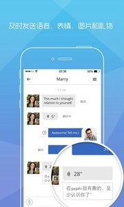 3,聊天:和世界上的好友畅聊无阻。支持全球8种语言9种文字在线智能语音翻译服务。