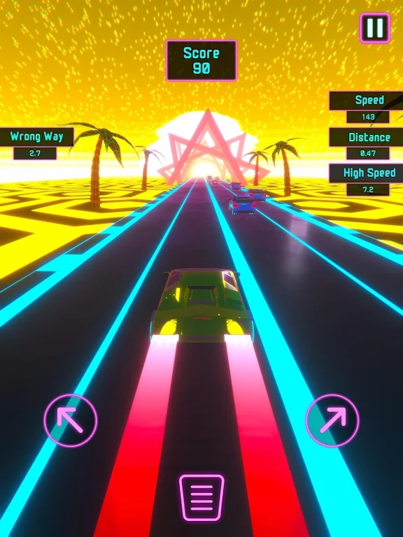 体验充满怀旧风情的霓虹灯效果,游戏中的复古画面带你重回60年代和70年代的竞速时代。