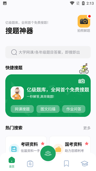 这款搜题软件扫描后能快速准确地提供答案,适合各年龄段用户日常轻松搜题。它涵盖了多种学科,并支持在线搜题。平台还提供了详尽的答案解析,方便用户自由学习,同时也能找到丰富的学习资料。
