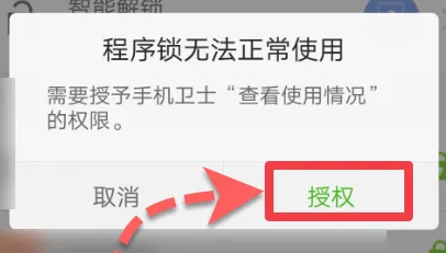 进入程序锁之后需要开启授权、然后验证密码两次、点击“授权”按钮。