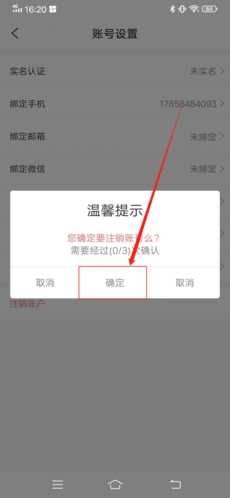 5、最后再选择3次确认,这样我们就能成功将账号注销了。