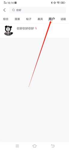 3、出搜索结果后,点击上方的“用户”,这样就能成功看到搜索的用户了,