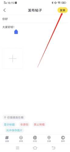 2、在帖子编辑页面,输入想要发布的帖子标题以及各种信息,完毕后点击右上方“发表”;