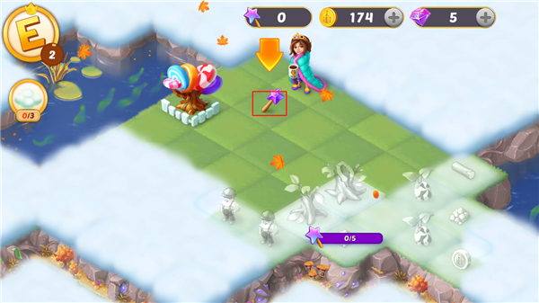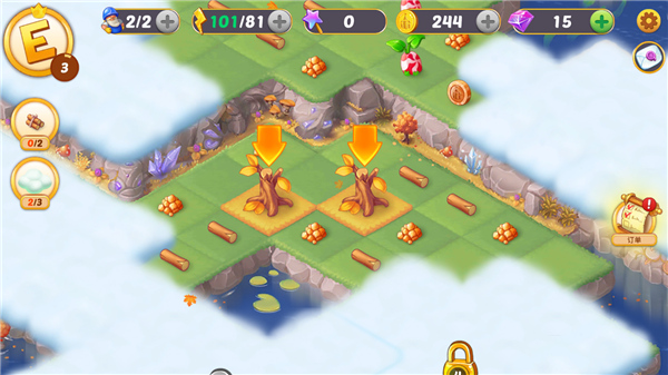 2、合并童话国破解版把园木合并,获得木房子,再把木房子合并,完工木材豪宅别墅。