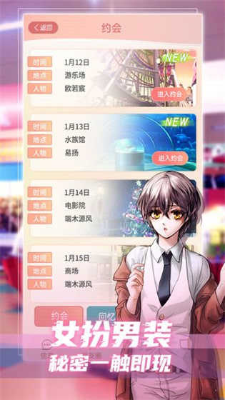 1、恋爱类型的游戏,可以和很多人来进行恋爱的玩法,恋爱玩法多;