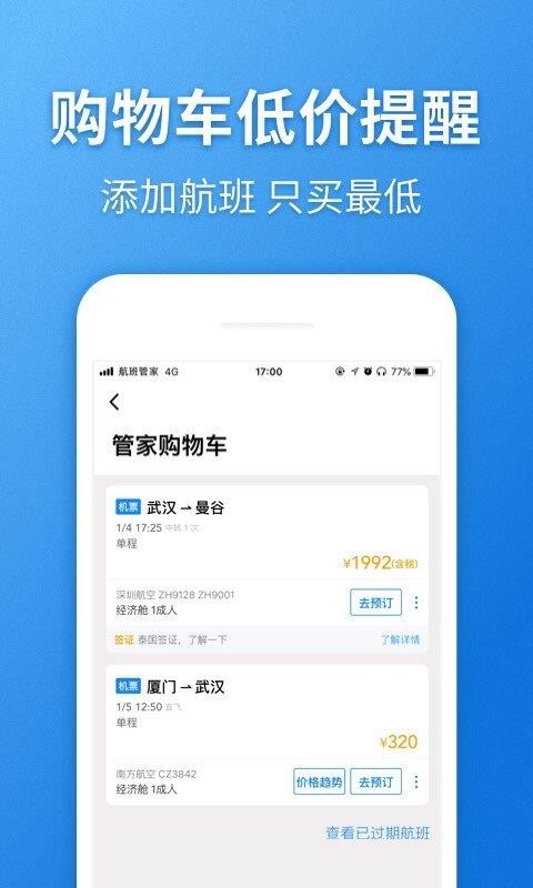 航班管家是一个专注于提供航班信息的平台,这里汇集了全网最具性价比的特价机票。若想查找优惠信息,航班管家是您的首选。无论是国内还是国际机票,我们持续提供各种优惠,助您畅游世界。您可以在线查询机票、火车票及高铁票信息,只需输入出发地和目的地,我们将迅速为您找到合适的行程安排,并展示车票价格,完成支付后即可等待出票。此外,添加到购物车的航班会提醒您最新的低价信息,确保您享受最低的价格。查看价格走势,让您随时了解价格变化。在线预订机票并支付,即可享受优惠价格。出行,您需要一个航班管家。