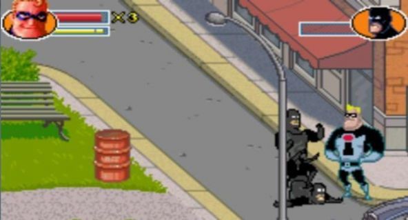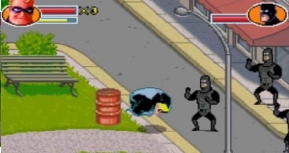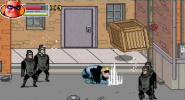 第8小关,又有鹦鹉了,还是一样,首选的K人对象,很快就到了一个门口,进去。,里面又有一大堆敌人,一样一样,用冲刺拳。然后超能先生进入了超能小子的电脑,得知了超能小子的计划,结果被抓了起来。我们弹力女超人以为超能先生有了外遇(汗!),而去了超能先生所在的岛屿,她的两个孩子也偷偷的跟了过去……