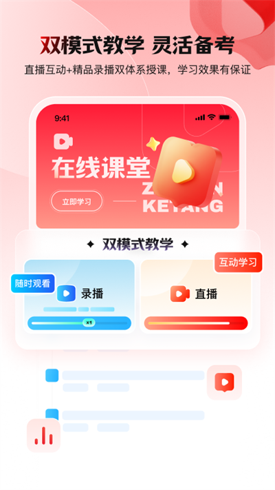 觉得一个人学习太孤独?害怕自己没有自制力?那就选择直播课程,所有学员同时在线学习,还可实时互动,让孤独感一扫而光。自制力强?学习能力强?当然选择录播课,批量下载、快进快退、倍速播放,你的学习节奏,由你自己掌握!